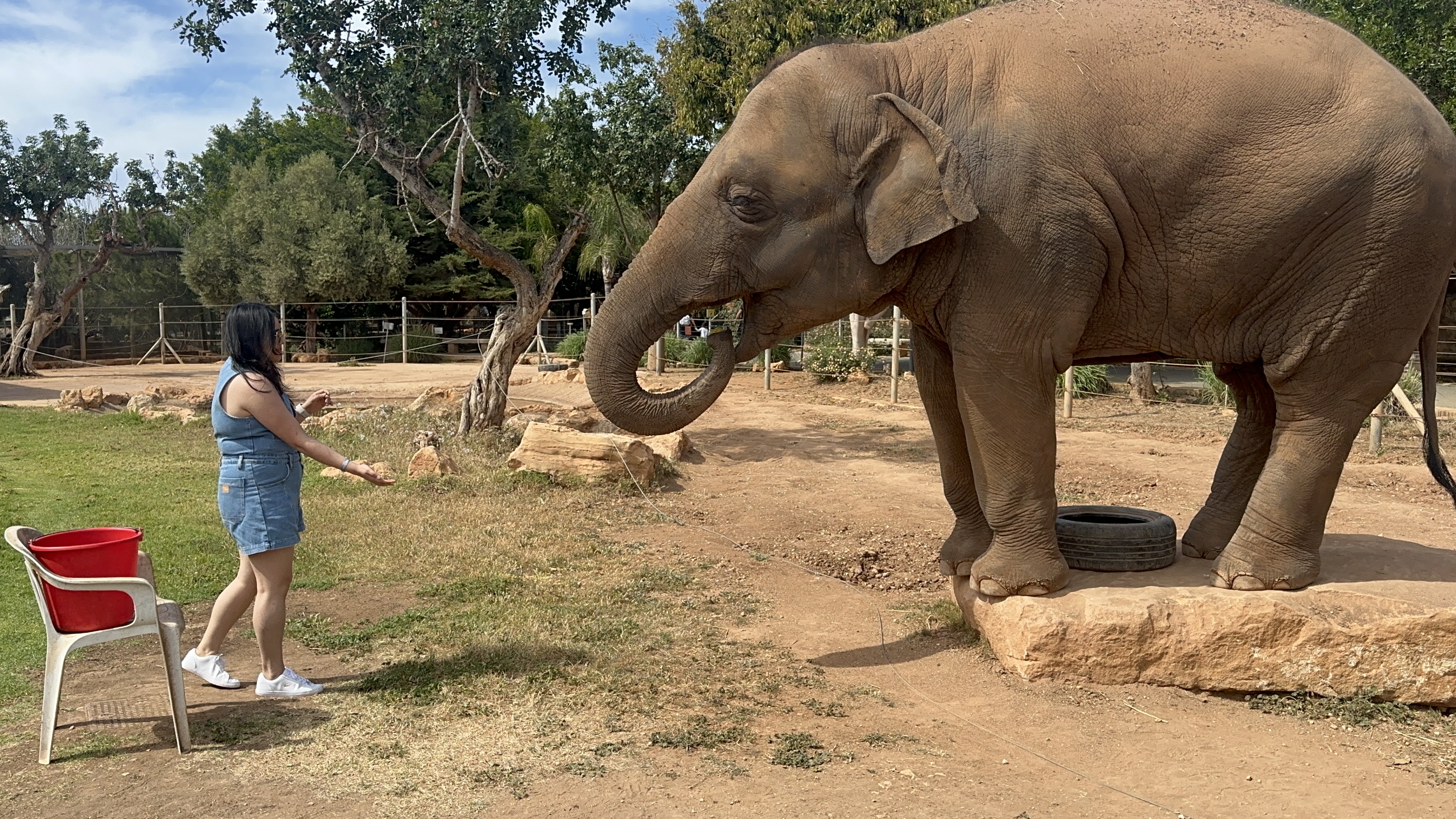 She has a tyre with her, and as she is essentially a teenager, apparently uses it as a safety blanket, and is very protective over it. The zoo says they walk her prior to the opening of the zoo for an hour and is allowed to walk around wherever she pleases, with her carer walking with her. From what i could see no animal cruelty overtly, but happy to be corrected if this was not the case.