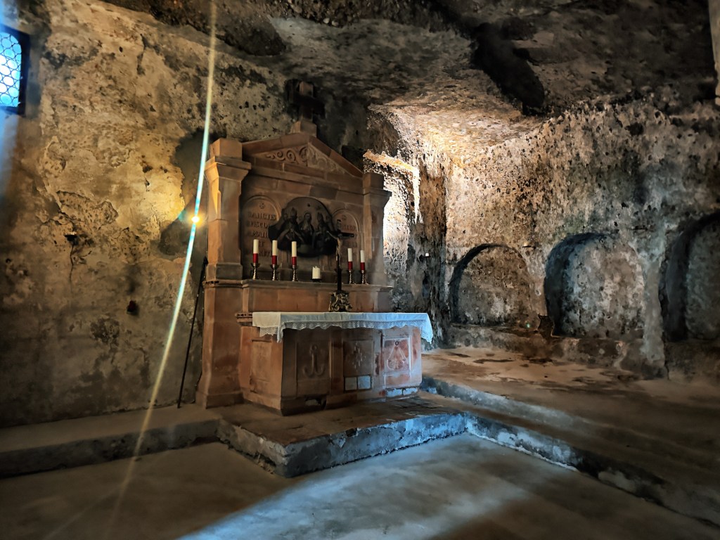 Seriously interesting, as this was an old religious site from the 4th century AD. At this time, Christianity was still just spreading across Europe. This meant that Christian’s would have to worship in secret, often around burial sites. This was also a place for burials, so is known for its layered burials of people. Kinda eerie huh?