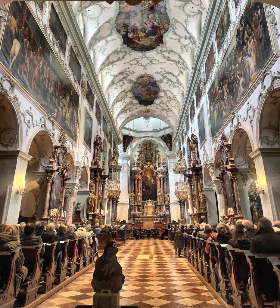 I am not quite sure how the Austrians do it. I have never seen cathedrals quite as extravagant as this, without seeming so overbearing! As you walk into this cathedral, a similar vibe of black and gold, with beautiful paintings around the place can be seen.