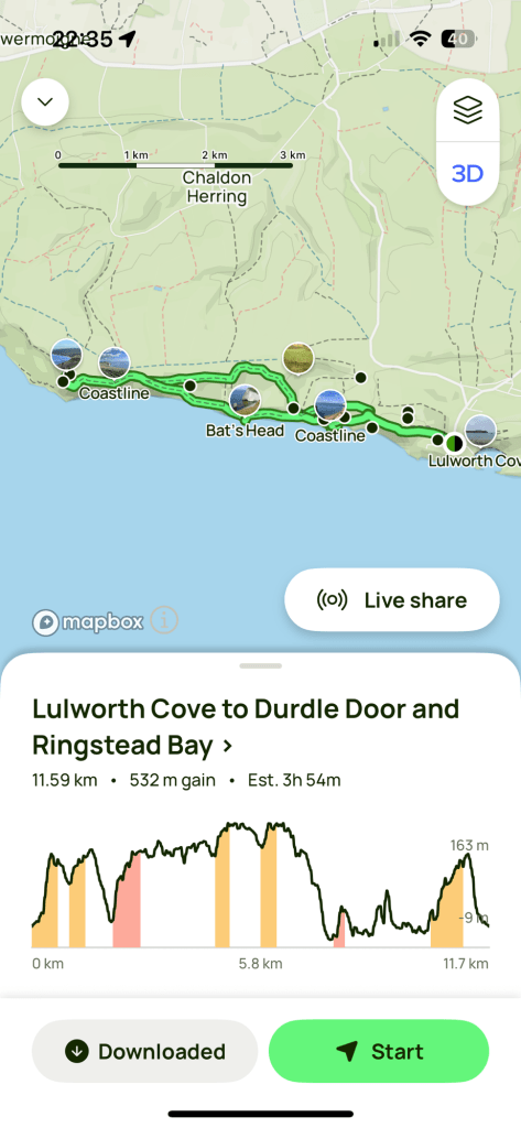 (Here is the link for all trails for those of you that have the app Trail to Durdle door )