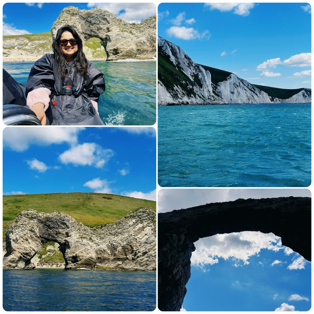 This was a total of 1.5 hours round trip and was genuinely so fun! Just imagine the sun shining, the waters a little choppy but only enough to give you that ‘I’m in a theme park’ experience, the water spraying on your face on a hot day. Honestly it was amazing! Then, not only do you get to see Durdle door, but you get to drive through it. Yes! You go through the archway.